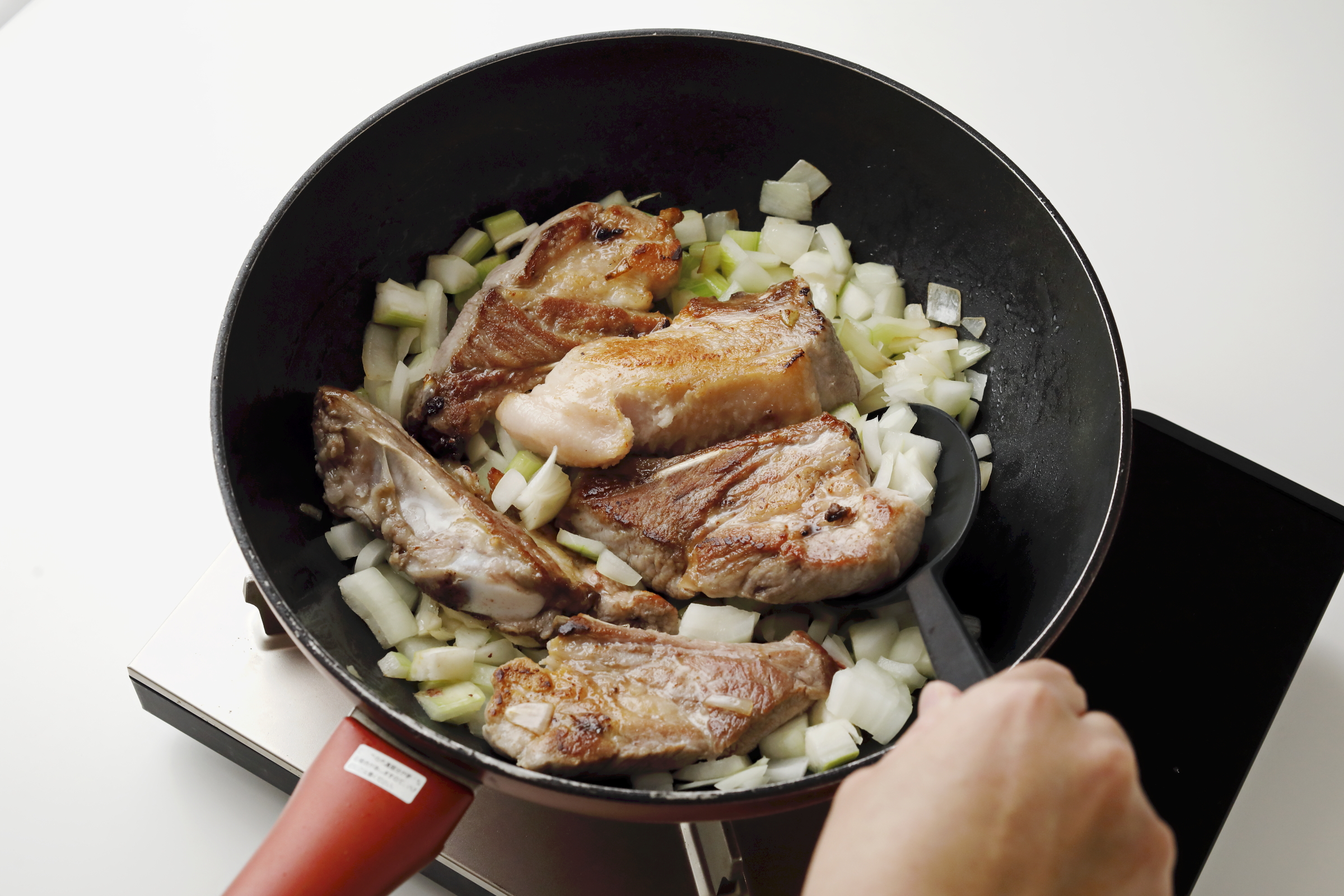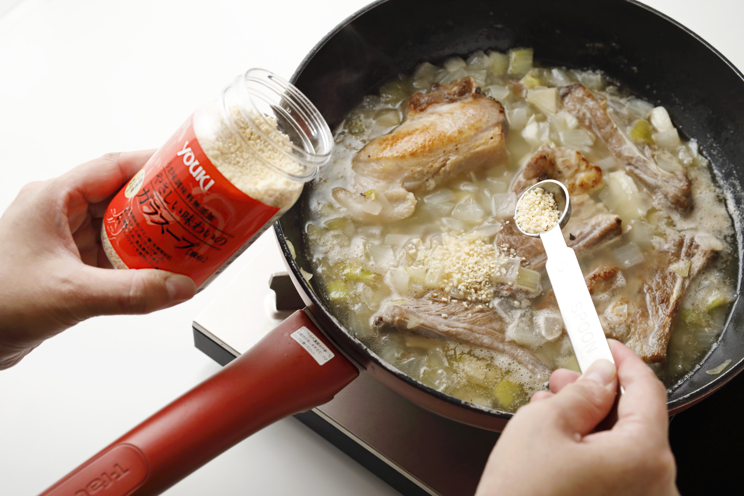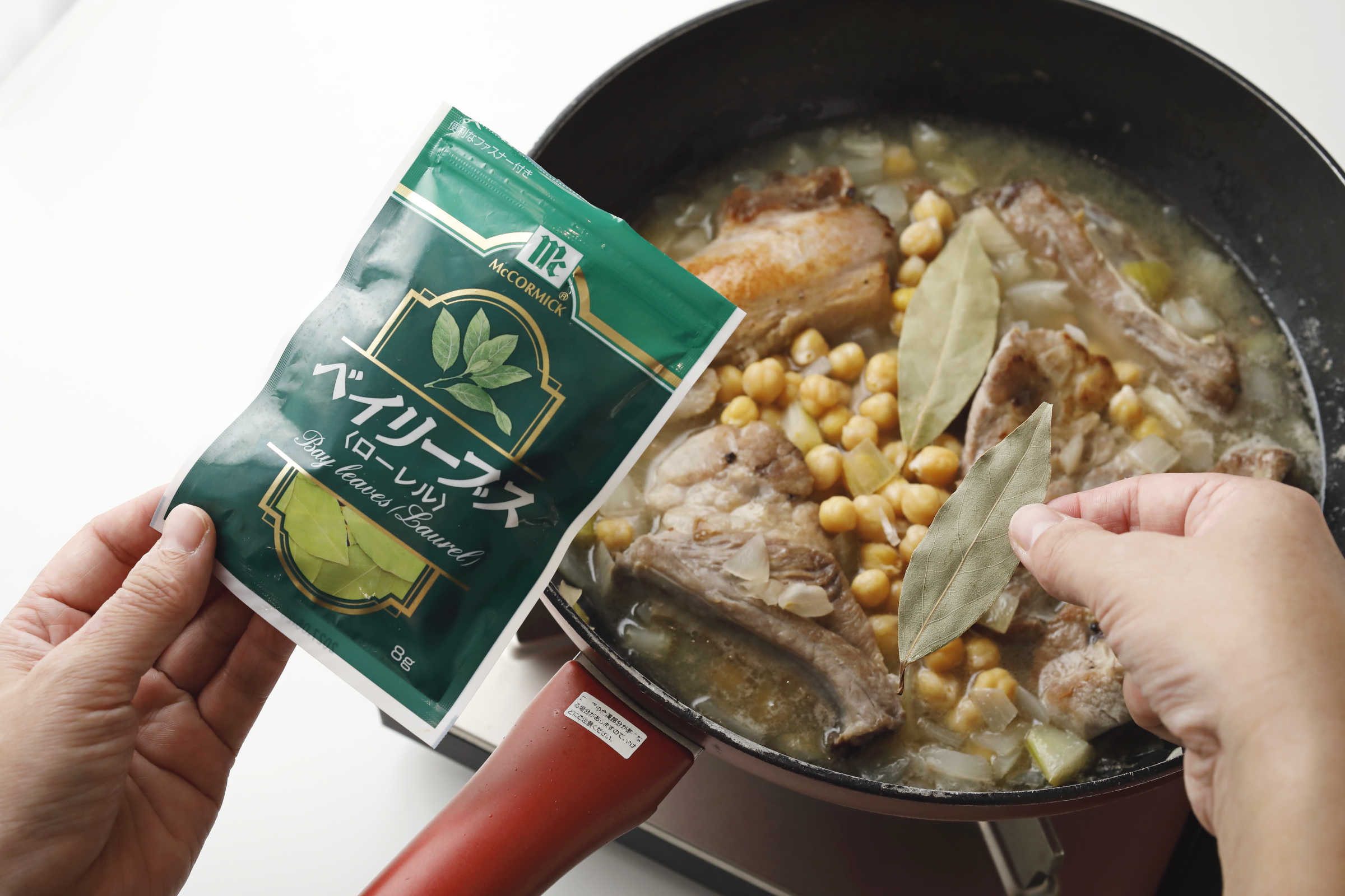 「カスレ」はフランスの伝統的な郷土料理で、肉と豆、香味野菜などをじっくり煮込んだもの。本場では白いんげん豆を使うのが主流ですが、ここでは手に入りやすいひよこ豆で代用します。