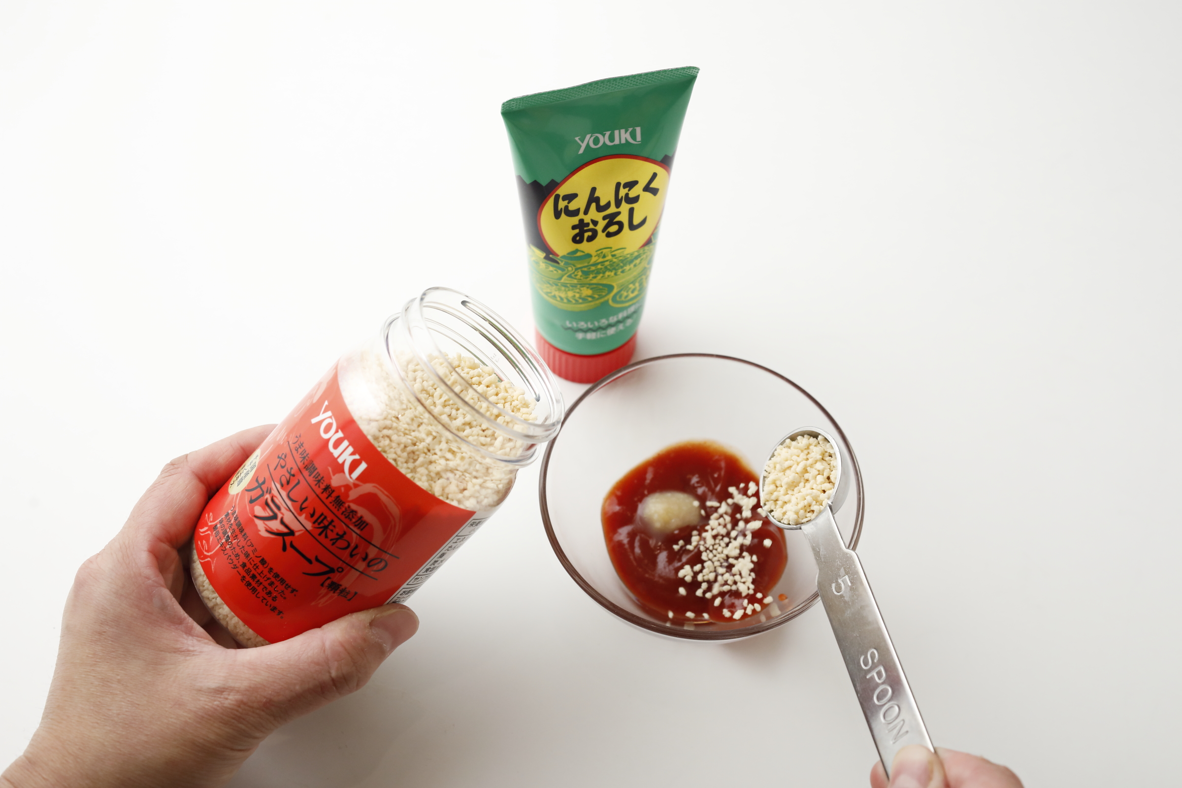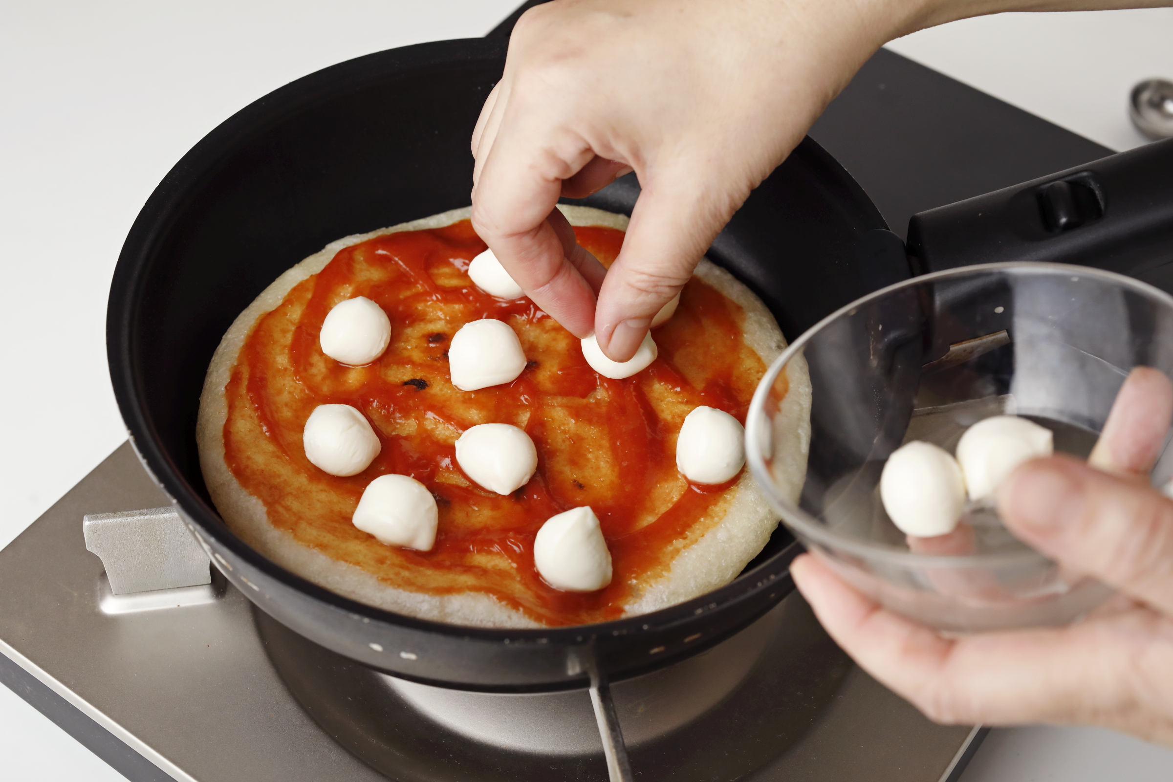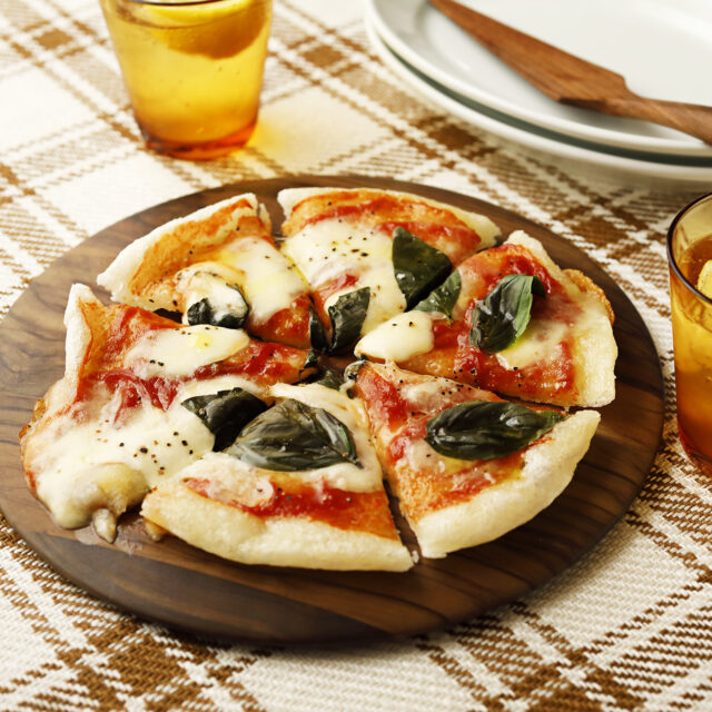 お餅をピザ生地代わりにしたユニークな一品。わざわざトマトソースを作らなくても、トマトケチャップにガラスープとにんにくを加えるだけで、おいしいソースが完成します。とろりと溶けたチーズが見た目にも食欲をそそる!