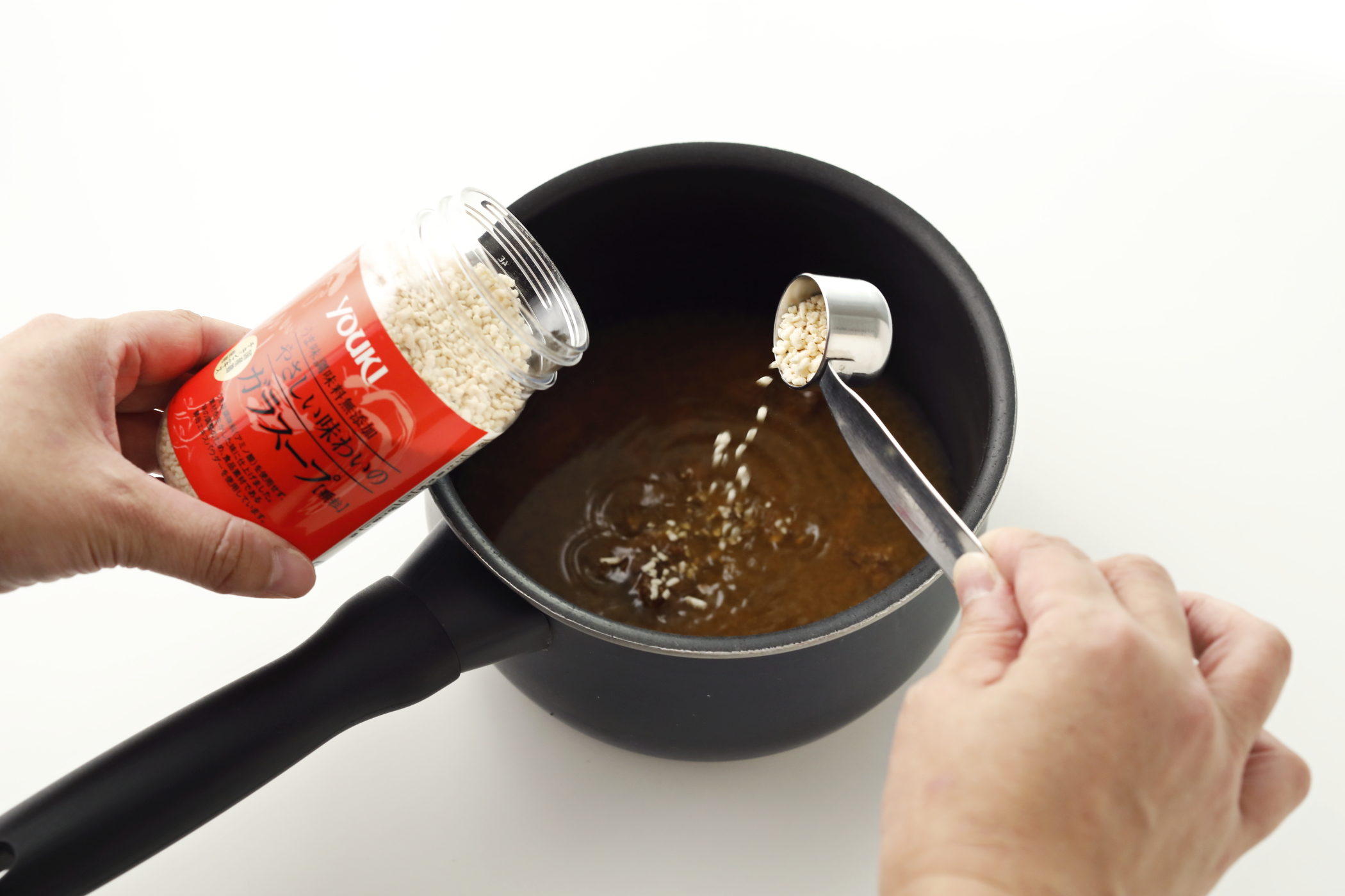 里いもは水溶性食物繊維が豊富で、腸内環境を整える効果があります。こっくりとしたみそバターの味にガラスープをプラスすることで、さらにうまみがアップします。濃厚な味わいで、ごはんとの相性も抜群です。