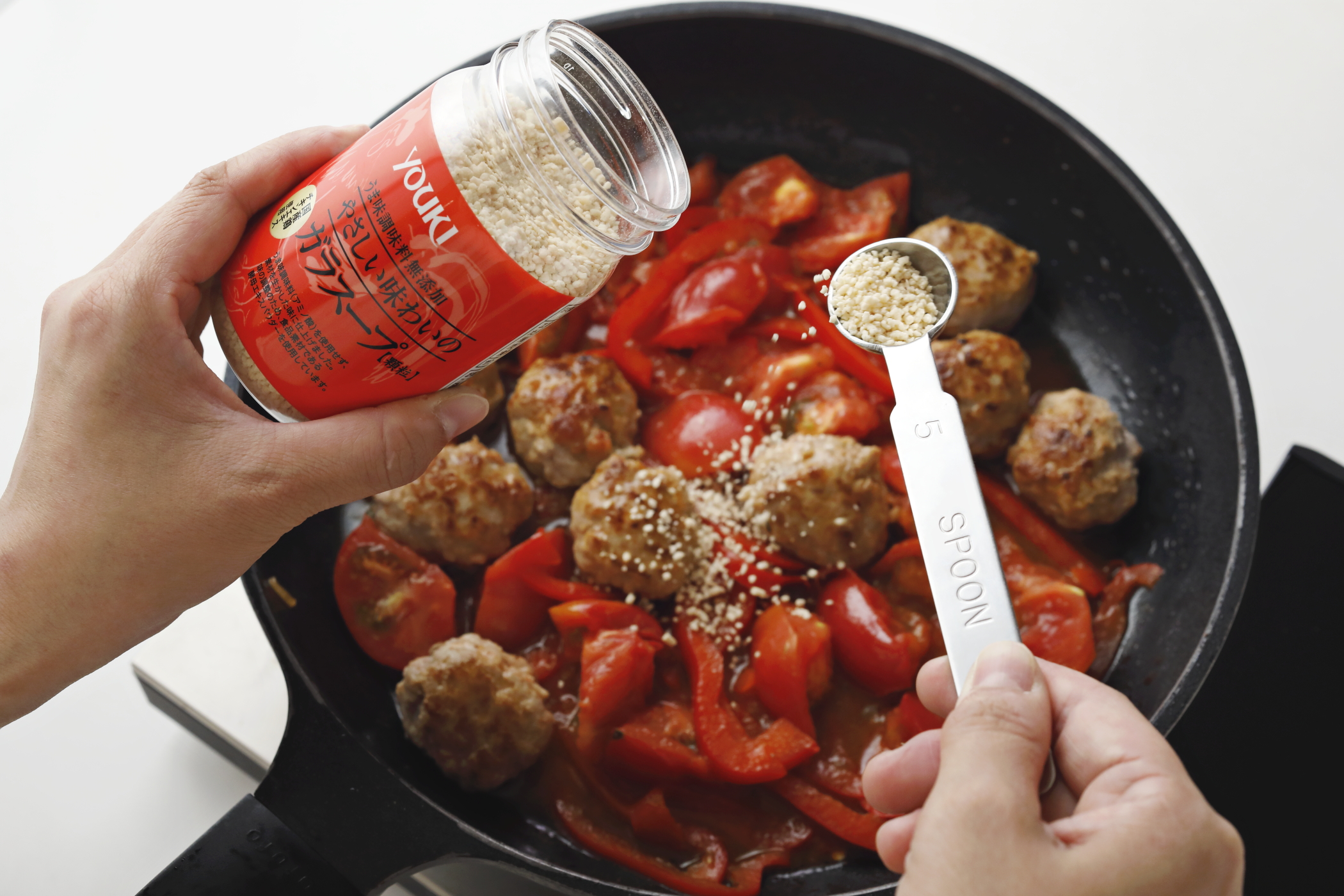 肉々しい味わいと食感のイタリア風ソーセージ「サルシッチャ」。ガラスープで味つけしたトマトとパプリカのソースが、肉のうまみを引き立たせて奥深い味わいに。赤ワインが飲みたくなる一品です。