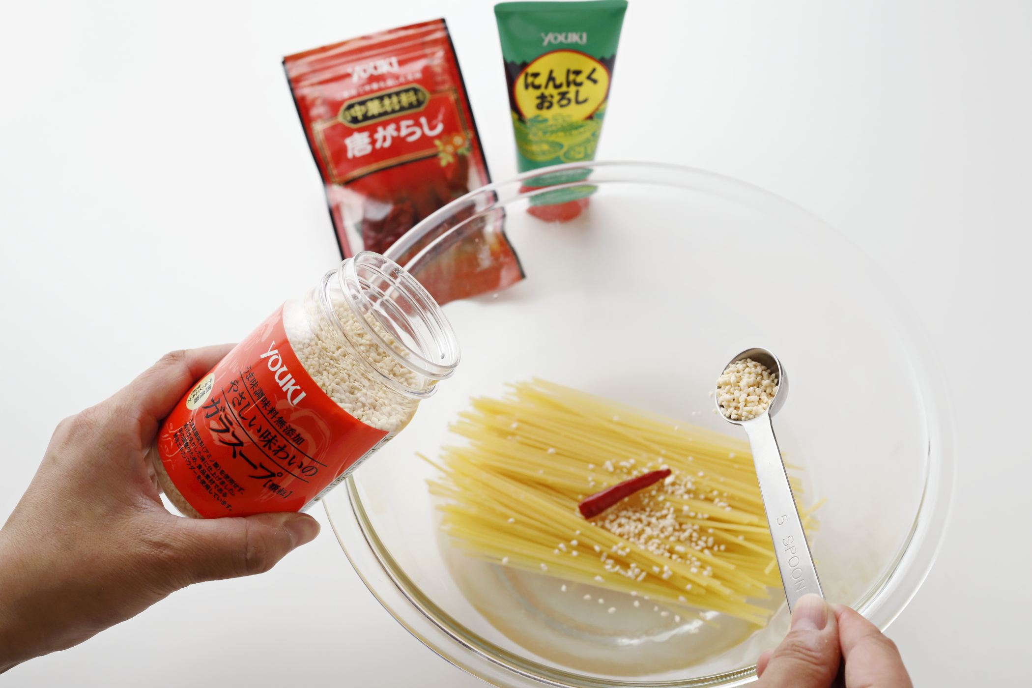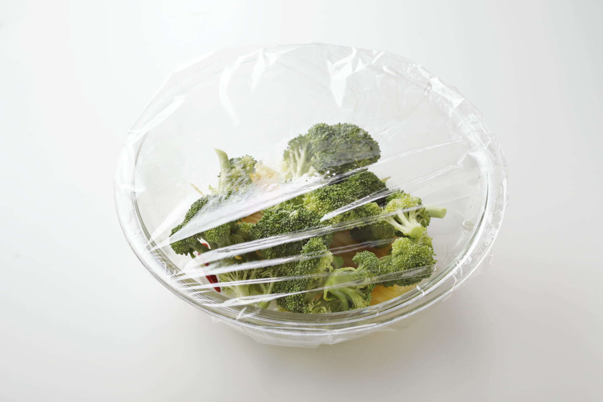 レンジで手軽に作れるペペロンチーニ風のパスタ。湯を沸かす時間が省け、火を使わないのでとってもラクチン! 具材はブロッコリーだけでも、ガラスープのうまみで抜群のおいしさに仕上がります。